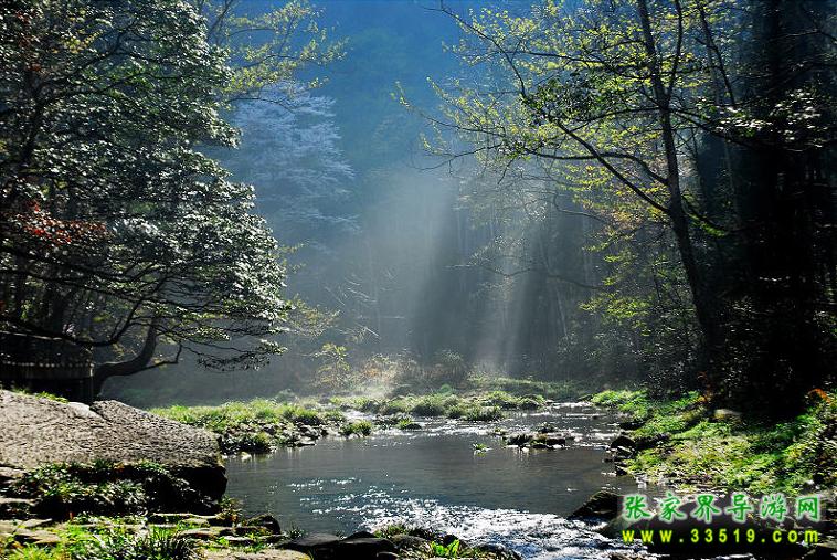 武陵源水繞山轉(zhuǎn),據(jù)稱僅張家界就有“秀水八百”,眾多的瀑、泉、溪、潭、湖各呈其妙。金鞭溪是一條十余公里長的溪流,從張家界沿溪一直可以走到索溪峪,兩岸峽谷對峙,山水倒映溪間,別具風(fēng)味。水使山林更有生氣,金鞭溪是一條長長的溪流,有十幾公里長,從張家界沿溪一直可以走到索溪峪,它潺緩地流過紙草潭、跳魚潭、楠木坪和天子洲,最后由索溪峪注入澧水。兩岸峽谷對峙,紅巖綠樹倒映溪間。走在溪邊小徑上,一路清涼沁人心脾。踏木橋石階,觀花斑魚潭戲水,聽布谷鳥的叫聲在山谷間回蕩。