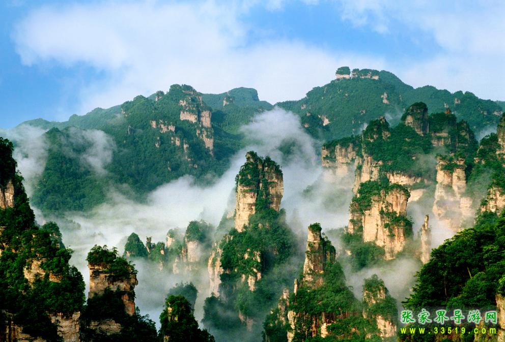 武陵源獨特的石英砂巖峰林在均屬國內(nèi)外罕見,在360多平方公里的面積中,目前所知有山峰3000多座,這些突兀的巖壁峰石,連綿萬頃,層巒疊嶂。每當雨過轉(zhuǎn)晴或陰雨連綿天氣,幽幽山谷中生出了云煙,云霧飄緲在層巒疊嶂間,云海時濃時淡,石峰時隱時現(xiàn),景象變幻萬千。霧,使晴日下堅硬的山峰變得妖嬈、飄逸和神秘。觀霧的最好季節(jié)是夏季,天子山是賞霧的最佳去處,也是攝影家常常涉足的地方。