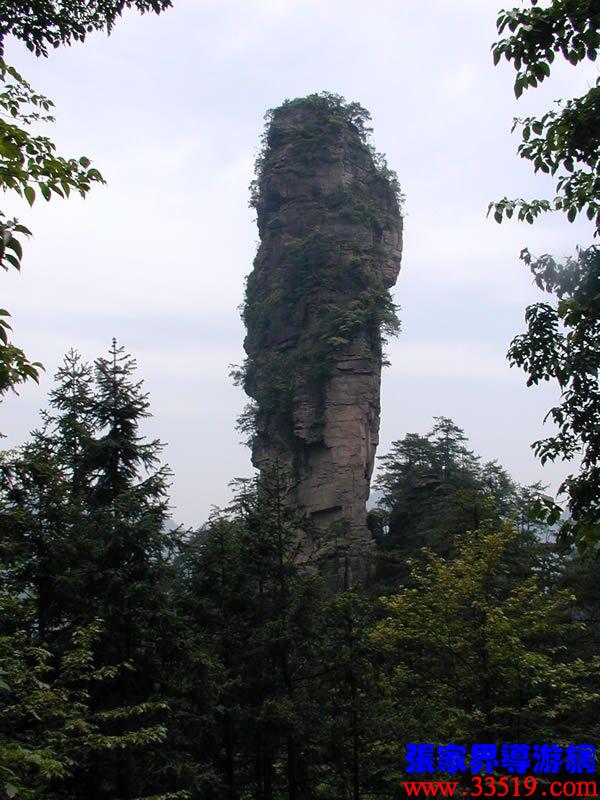 (丹葫蘆)這座小小的石山,多像一個(gè)瓜葫蘆!相傳張良追隨赤松子云游天門山、張家界,就在這大巖屋,發(fā)現(xiàn)赤松子大仙的蹤影并得到赤松子的煉丹葫蘆。不料,幾百名官兵跟蹤而來,張良倉(cāng)忙率徒兒撤往黃石寨(黃獅寨),一不小心,丟了丹葫蘆,官兵爭(zhēng)先恐后去搶,丹葫蘆突然飛上九天,發(fā)出一道祥光,慢慢化成一座石峰,從空中落下來,把官兵壓在石峰底下。張良突然醒悟:“原來是赤松子大仙搭救,要不然我命休矣!”
