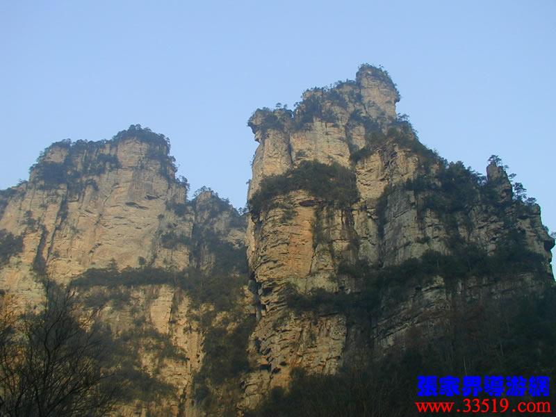 (花果山、水簾洞)孫悟空的花果山水簾洞到了。并不是張家界人過(guò)于牽強(qiáng),胡亂把西游記的事兒往這兒湊,實(shí)在是巧合,《西游記》劇組的導(dǎo)游楊潔及唐僧、豬八戒、孫猴子、沙和尚等飾演者,一見(jiàn)到這地方就十分肯定地說(shuō):外景地選遍全國(guó),只有張家界才真正是《西游記》筆下的神仙妖魔世界。大家順著我的指向往前看,左前方是帶著僧帽,披著袈裟,嘴中念念有詞的唐僧,緊跟在他后面的那座黑乎乎的石峰當(dāng)然就是沙和尚了;神通廣大的孫猴子半蹲在唐僧后側(cè)手搭涼篷,正在觀察敵情呢;豬八戒哪去了?不用說(shuō),不是貪吃貪睡,就是偷偷找小女子搭訕去了,花心去了。