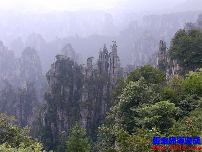 現(xiàn)在我們乘車前往天子山自然保護區(qū)。天子山,海拔1262.5米,因當(dāng)?shù)?a class="insidelink" href="http://www.uubeijing.com/fengqing/" title="土家族">土家族領(lǐng)袖向大坤被軍擁為“向王天子”而得名。天子山為臺地地貌,中間高,四周低,因而視野開闊,透視線長,層次分明,氣勢雄渾。天子山觀景,與黃石寨(黃獅寨)、金鞭溪的感覺不同。游黃石寨(黃獅寨),您是與群峰對坐,與群峰平視;游金鞭溪,您是“人在畫圖中”仰視高聳于溪兩岸的群峰;而在天子山,則可俯視大千世界,您會生出“山上無山我獨尊”的無限豪情。天子山有四大奇觀:峰林、云海、日出、冬雪。一幅幅雄偉壯觀、奇特迷人的景象,相信會讓大家大飽眼福而流邊忘返。